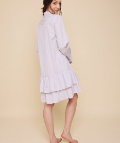 Long Sleeveless Nightiein Pink Stripe Shirting