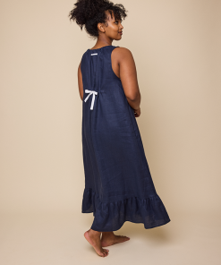 Full Length Sleep Shirtin Navy Paisley Flannel