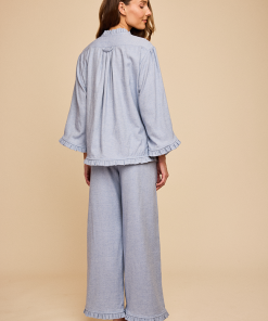 Ruffled Sleep Setin Blue Herringbone Flannel