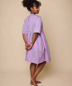 Long Sleeveless Nightiein Pink Stripe Shirting