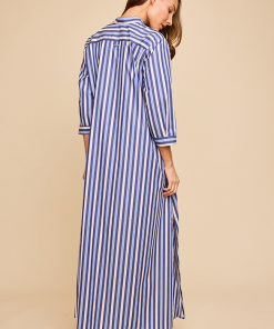 Full Length Sleep Shirtin Navy Taupe Stripe