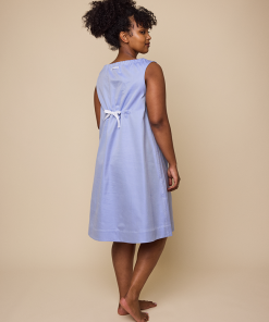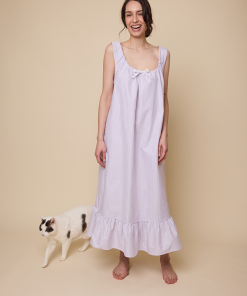 Long Sleeveless Nightiein Lavender Oxford Stripe