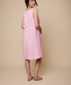Long Sleeveless Nightiein Pink Stripe Shirting