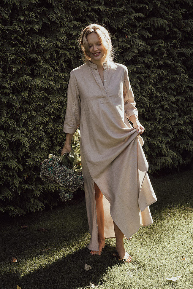 We thought we’d nailed it with our classic nightshirts, but when we started getting letters from customers begging for modest sleepwear and a floor-length night shirt, we knew it was time to take action. The Full Length Sleep Shirt was an instant hit, for our cold weather customers wanting to cover up in winter, and our sun-loving customers needing something with coverage to wear poolside. Crafted with a touch of cashmere for natural warmth and a silky touch, this soft blend brings understated luxury to your sleepwear and loungewear.
