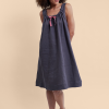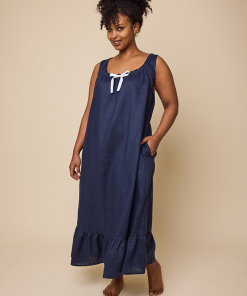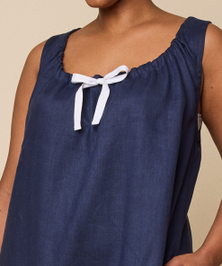 Long Sleeveless Nightiein Navy Linen